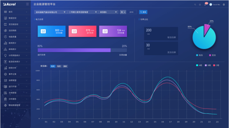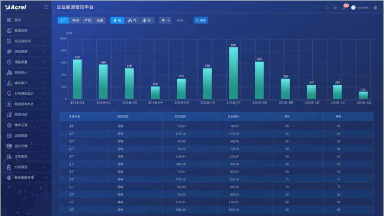 安科瑞企業(yè)能源管控平臺采用自動化、信息化技術(shù)和集中管理模式,對企業(yè)的生產(chǎn)、輸配和消耗環(huán)節(jié)實行集中扁平化的動態(tài)監(jiān)控和數(shù)據(jù)化管理,監(jiān)測企業(yè)電、水、燃?xì)?、蒸汽及壓縮空氣等各類能源的消耗情況,通過數(shù)據(jù)分析、挖掘和趨勢分析,幫助企業(yè)針對各種能源需求及用能情況、能源質(zhì)量、產(chǎn)品能源單耗、各工序能耗、重大能耗設(shè)備的能源利用情況等進行能耗統(tǒng)計、同環(huán)比分析、能源成本分析、用能預(yù)測、碳排分析,為企業(yè)加強能源管理,提高能源利用效率、挖掘節(jié)能潛力、節(jié)能評估提供基礎(chǔ)數(shù)據(jù)和支持。