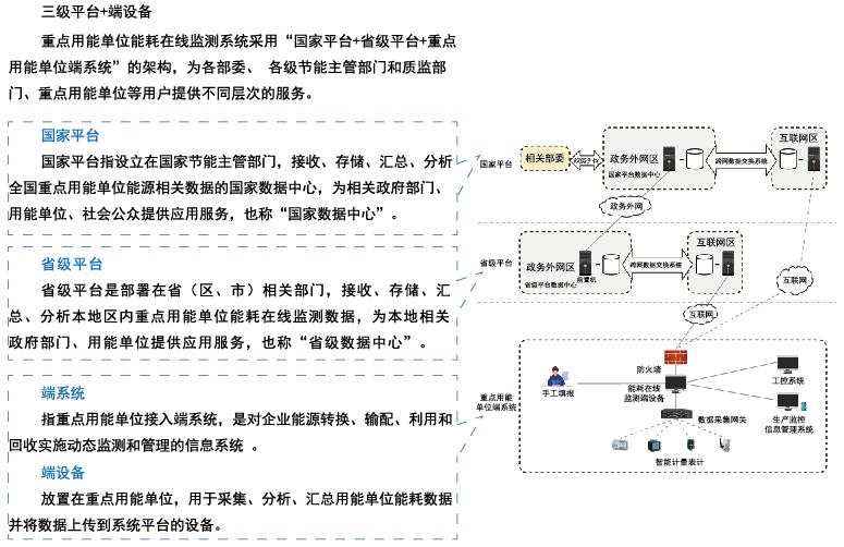 要具備遠(yuǎn)程升級維保、一端多傳、接收國家和省級平臺推送信息和用能單位自身能源管理所需的功能。