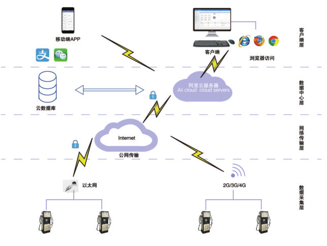 安科瑞Acrelcloud-充電樁收費運營云平臺系統(tǒng)通過物聯(lián)網(wǎng)技術(shù)對接入系統(tǒng)的充電樁站點和各個充電樁進(jìn)行不間斷地數(shù)據(jù)采集和監(jiān)控,同時對各類故障如充電機過溫保護(hù)、充電機輸入輸出過壓、欠壓、絕緣檢測故障等一系列故障進(jìn)行預(yù)警;用戶通過微信小程序掃描二維碼進(jìn)行支付后,系統(tǒng)發(fā)起充電請求,控制二維碼對應(yīng)的充電樁完成電動汽車的充電過程。 充電樁可選配WIFI模塊或GPRS模塊接入互聯(lián)網(wǎng),配合加密技術(shù)和秘鑰分發(fā)技術(shù),基于TCP/IP的數(shù)據(jù)交互協(xié)議,與云端進(jìn)行直連。云平臺包含了充電收費和充電樁運營的所有功能,包括財務(wù)管理、變壓器監(jiān)控和運營分析等功能。
