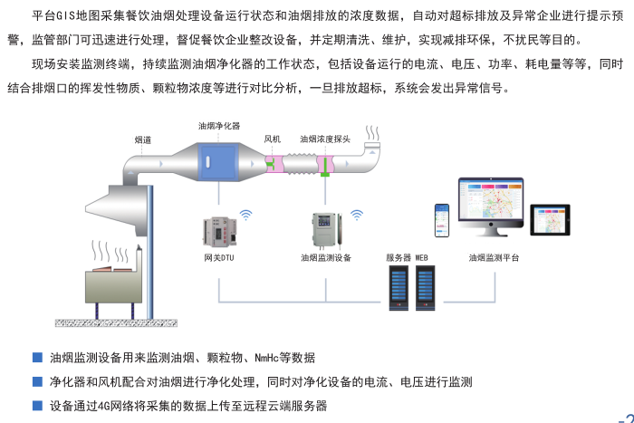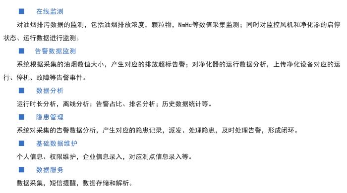 為了彌補現(xiàn)存餐飲行業(yè)在煙油監(jiān)測上的漏洞,同時便利監(jiān)管部門的監(jiān)察,安科瑞油煙監(jiān)測云平臺應(yīng)運而生。油煙監(jiān)測模塊通過2G/4G與云端平臺進行通信和數(shù)據(jù)交互,系統(tǒng)能夠?qū)ζ髽I(yè)餐飲設(shè)備的開機狀態(tài)、運行狀態(tài)進行監(jiān)控;實現(xiàn)開機率監(jiān)測,凈化效率監(jiān)測,設(shè)施停運告警,待清洗告警,異常告警等功能;對采集數(shù)據(jù)進行統(tǒng)計分析、排名等統(tǒng)計功能;較之傳統(tǒng)的靜電監(jiān)測方案,更具安全性和實效性。