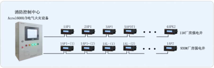 我司承接其電氣火災系統(tǒng)的搭建,對安裝于廠房配電箱進線處的剩余電流火災探測器設(shè)計一套Acrel-6000/B電氣火災系統(tǒng),由此來實時監(jiān)測廠房內(nèi)重要回路的漏電流,以確保廠房配電系統(tǒng)的電氣安全。