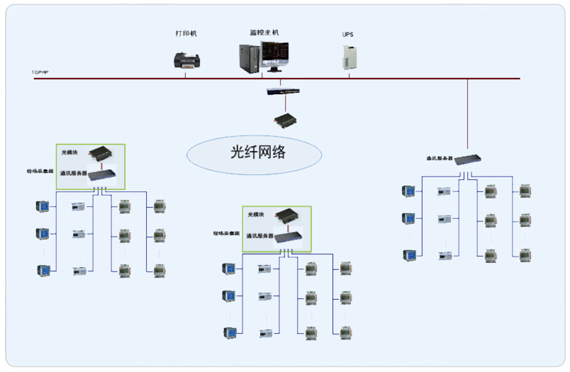 系統(tǒng)采用Acrel-3000型電能管理系統(tǒng),整個(gè)系統(tǒng)采用網(wǎng)絡(luò)分布式結(jié)構(gòu),監(jiān)控主機(jī)位于主樓監(jiān)控中心,其他兩棟輔樓采用采集箱進(jìn)行數(shù)據(jù)的采集,所有配電回路均配備安科瑞電力儀表PZ系列、DTSY1352和DDSY1352系列。該項(xiàng)目實(shí)現(xiàn)了歐蓓沙中華美食城的配電管理及。所有監(jiān)控設(shè)備均通過屏蔽雙絞線至各自采集箱的通訊采集器,再通過光電轉(zhuǎn)換器經(jīng)過光纖將數(shù)據(jù)傳輸至監(jiān)控中心,從而實(shí)現(xiàn)遠(yuǎn)程監(jiān)控和預(yù)付費(fèi)管理。