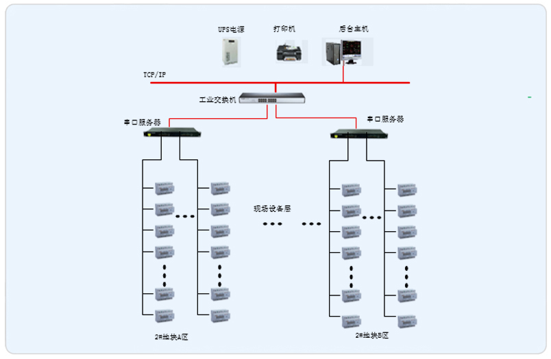 本項(xiàng)目為遵義奧特萊斯城市廣場(chǎng)的2#地塊,其中分為A區(qū)和B區(qū),A、B兩個(gè)區(qū)域,共使用了型號(hào)為DDSY1352-NK和DTSY1352-NK的內(nèi)控型預(yù)付費(fèi)電表328只。安科瑞Acrel-3200遠(yuǎn)程預(yù)付費(fèi)管理系統(tǒng)根據(jù)遵義奧特萊斯城市廣場(chǎng)實(shí)際情況進(jìn)行組網(wǎng)設(shè)計(jì),因?yàn)槲飿I(yè)要求電費(fèi)由財(cái)務(wù)收取,所以將遠(yuǎn)程預(yù)付費(fèi)管理系統(tǒng)主機(jī)設(shè)置在財(cái)務(wù)室內(nèi),而且現(xiàn)場(chǎng)儀表到財(cái)務(wù)室的距離都不超過300米,所以采集器都安裝在財(cái)務(wù)室內(nèi)的操作臺(tái)里,現(xiàn)場(chǎng)所有的內(nèi)控型預(yù)付費(fèi)電表都是通過RS485總線直接入到采集器。